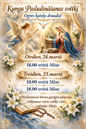 Vikārs Henriks Rektiņš, t. 27149994 (jautājumos tikai par Ogres katoļu draudzi).